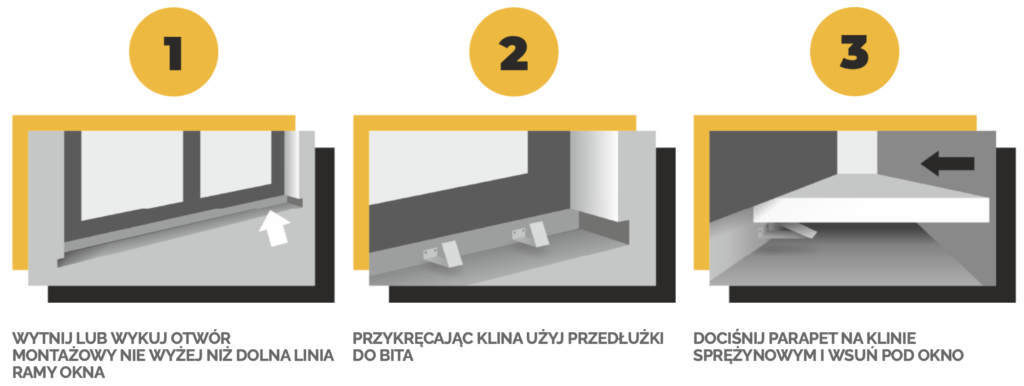 Szybki montaż parapetu z użyciem klinów sprężynowych F1